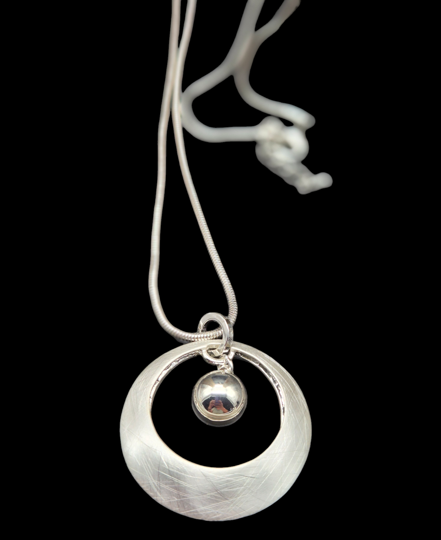 Die Kette ist 80cm lang und hat ein Verlängerungskettchen von 8cm. Der Anhänger hat einen Durchmesser von 5cm. Ideal für jeden Ausschnitt.
